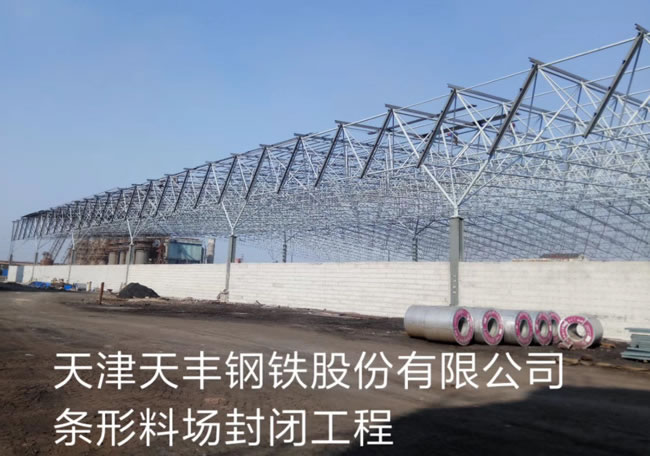 天津天豐鋼鐵股份有限公司條形料場封閉工程具有耐腐蝕,耐高溫,耐潮濕等一系列的優勢,并且電廠干煤棚網架抗震性能好電廠干煤棚網架特點1、能夠獲得很大的跨度,中間沒有立柱。